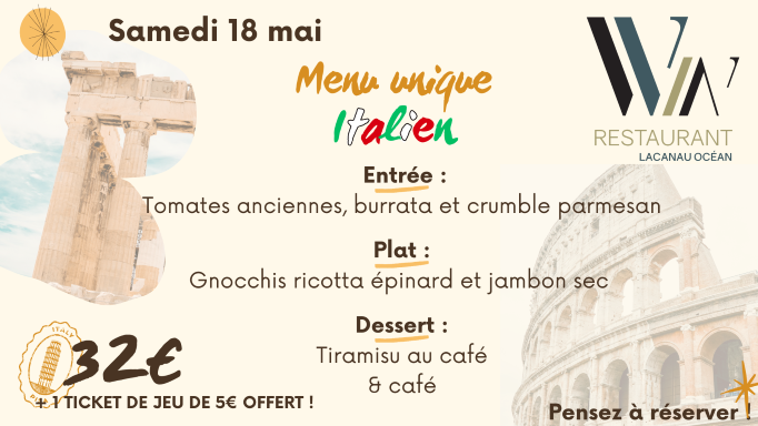 Les places sont limitées. Pour réserver votre table : 05.57.17.03.80 ou ICI